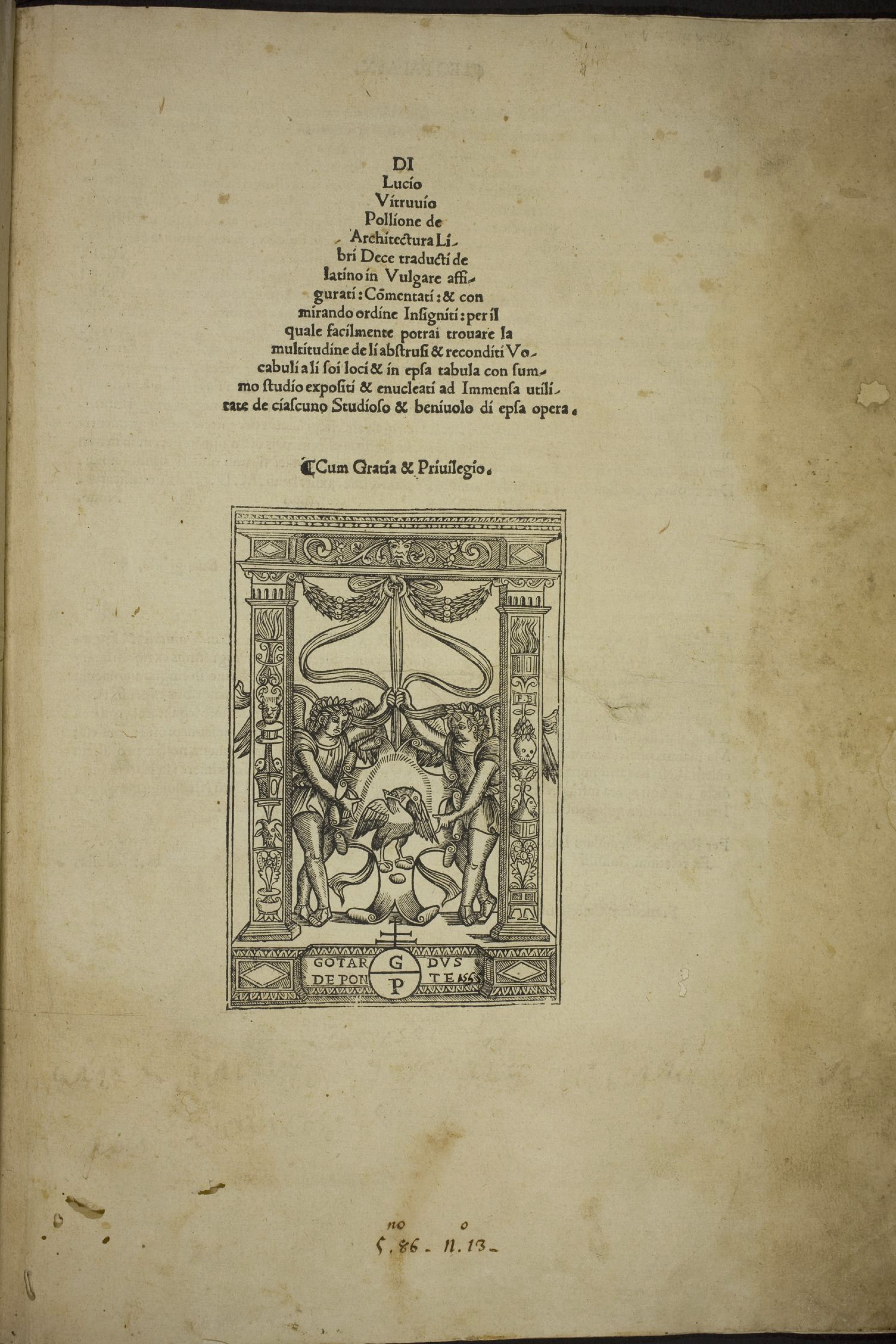 | Titel- und Urheberangaben | Di Lucio Vitruvio Pollione de Architectura Libri Dece traducti de Latino in Vulgare affigurati: Co[m]mentati: & con mirando ordine Insigniti: per il quale facilmente potrai trouare la multitudine de li abstrusi & reconditi Vocabuli a li soi loci & in epsa tabula con summo studio expositi & enucleati ad Immensa utilitate de ciascuno Studioso & beniuolo di epsa opera. Cum Gratia & Priuilegio. [Vitruvius Pollio ; Cesare Cesariano] |