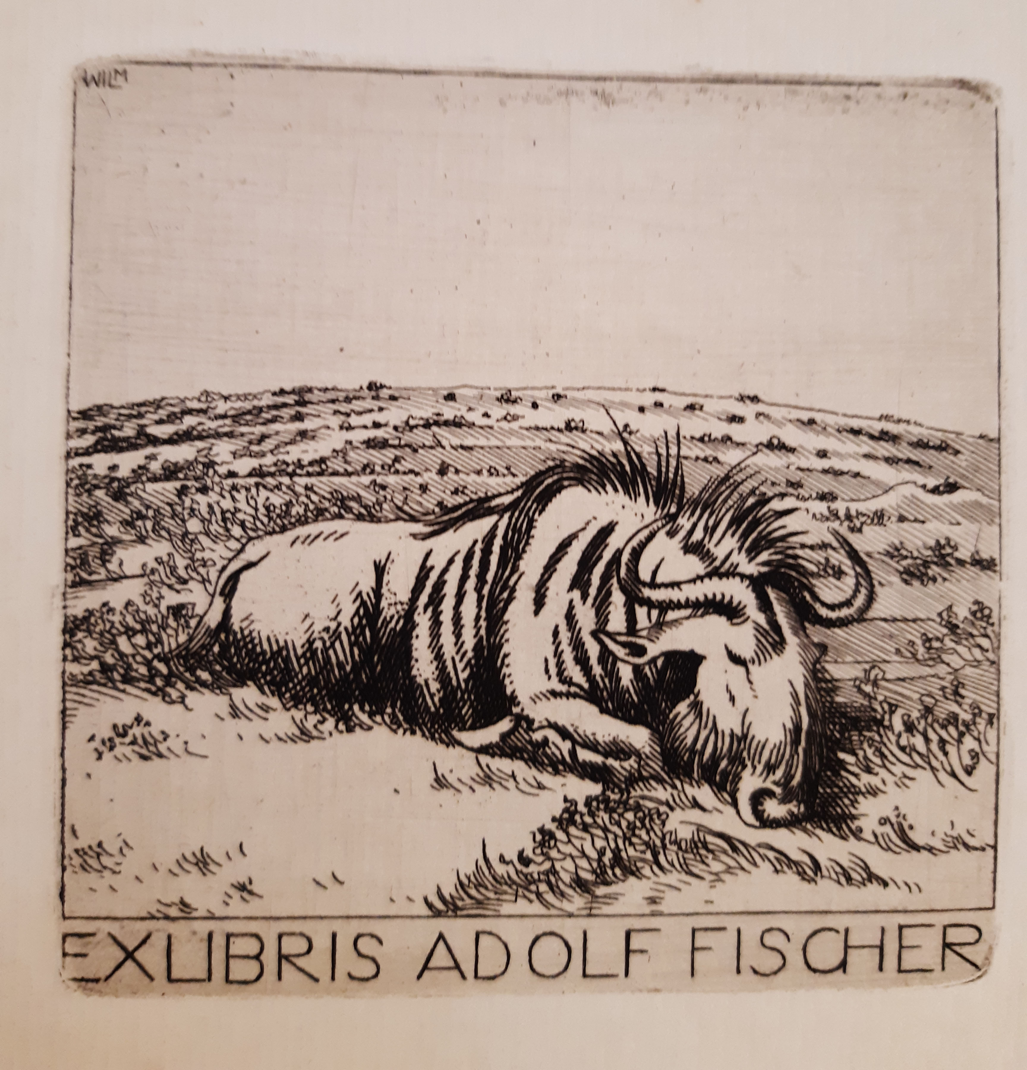 | Anmerkung zur Provenienz | Goldgeprägt auf dem Rücken unten: "I.W.B." (i.e. der frühere Eigentümer oder der Buchinder?); Exlibris auf dem vorderen Spiegel: "Exlibris Adolf Fischer" (nicht weiter identifiziert; Sujet: schlafendes Gnu, Stecher: "Wil M"); handschriftlicher Besitzvermerk auf dem hinteren fliegenden Vorsatzblatt verso: "Erik Fischer" (nicht weiter identifiziert) |